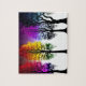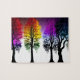 Neon Autumn Foliage on Black Silhouette Trees Jigsaw Puzzle