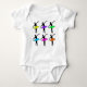 Baby suit features an original illustration of a row of silhouetted ballerinas in neon tutus. Great for a dance teacher baby gift!