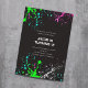 Fun colourful bright paintball paint splatters on a dark background that's perfect for a paintball themed birthday party.