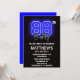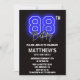 Neon Black Blue 88th birthday invitations