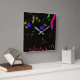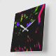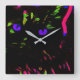 Neon Black Cat with Glowing Eyes Square Wall Clock