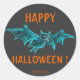 Fun and funny design for Halloween, neon bat (looks really creepy under a black light) exclaiming Happy Halloween. Great for sealing Halloween cards or as goodie bag treats. Customise by changing the text to reflect your own Halloween thoughts. Happy Halloween!