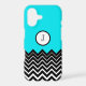 Cute trendy modern chic girly custom monogram case for your cell phone, ipad and more in a neon blue color which can be changed by selecting a different color. The bottom portion of this case is designed with a black and white chevron zigzag image that can be enlarged, reduced and moved around by clicking "customize it" and selecting the chevron image then use the directional tools to move it around. Change the monogram with a different letter or initials.