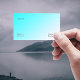Business card template with beautiful neon blue gradient background and dark grey fonts . Artistic design by Alma Wad .Personalise both sides now .It comes 100 in a pack .