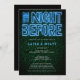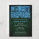 Get ready for the night before! Let's rehearse the couples' big day in style with our neon blue retro neon style the Night before lettering on country garden green wall. A cool and funky simple rehearsal dinner invitation featuring fun script.