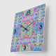 Neon Blue, Lime, Purple & Orange Swirl Pattern Square Wall Clock