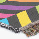 A quality printed throw has its advantages. This is a much finer weave throw than its loopier cousins, and though lighter, it is worth the investment for custom room accessorizing. The back is much prettier than the typical brown, and the fringe on the long sides very vivid, the selvage nicely done. Before photographing, I washed the throw in cold water, delicate, with a thicker woven throw the same size. On tumble dry low, this throw was dry in half the time as the other. This is a very practical quality if you use throws for furniture covers or to wrap up in frequently. The sleekness of the fabric makes it a great layer for accenting or protecting without the feeling of sitting on too much stuff. Perfect for napping or when you feel a light chill coming on. The color printing is beautiful and on this fabric, matched the design and color of my Photoshop image. This is an advantage for blending room fabrics and colors. The fringe on the short sides prints the colors from the design image and therefore varies from the side fringe. I streaked a white fractal line through the plaid pattern to give the illusion of weaving. This printed as crisp as an illusory thread, and put some white in the short side fringe, showing another advantage of print vs loomed- for artistic purposes, line lines, detail, and color integrity can be planned and preserved. My loomed throws have color limitations and more of a needlepoint texture. Print throws reproduce an exact image. The throw felt a little stiff straight out of the package, but this went away in the first delicate wash. Of course I searched the wash water for ink or bleeding and there was none.