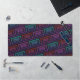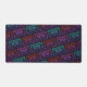 Neon cassette desk mat featuring a retro tape pattern in bold red and pink tones on a dark background. Bright neon hues create a vibrant, nostalgic vibe inspired by 80s and 90s music culture.