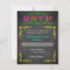 Have a trendy Bat Mitzvah with this neon green, pink, orange, aqua blue and yellow vintage scrolls chalkboard rsvp card that matches the Bat Mitzvah party invitation shown below. If there are any matching items you would like in this design, please email niteowlstudio@gmail.com with your request.