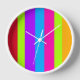 Bright, bold, colorful neon stripes with white in the middle make a bold, happy statement. Wall Clock.