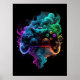 Colourful rainbow neon game controller with fluorescent galaxy smoke.