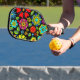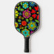 Neon Colours On Black Retro Floral Seamless Patter Pickleball Paddle