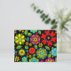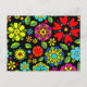 Neon Colours On Black Retro Floral Seamless Patter Postcard