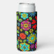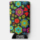 Seltzer Can Cooler Koozie Sleeve printed with Neon Colours On Black Retro Floral Seamless Pattern original hand drawn graphic design artwork illustration by TheFabricSeal print on demand shop at Zazzle.com #ZazzleMade ©️Original. https://www.zazzle.com/store/thefabricseal