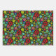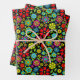 Gift Giving Package Wrapping Paper set of 3 sheets printed with Neon Colours On Black Retro Floral Seamless Pattern original hand drawn graphic design artwork illustration by TheFabricSeal print on demand shop at Zazzle.com #ZazzleMade ©️Original. https://www.zazzle.com/store/thefabricseal