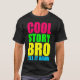 Bright colours like neon ... big block letters against a black background. Cool Story, Bro! Tell it again!