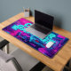 Neon Cyan Magenta Cyberpunk Garage Retro Car Desk Mat