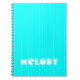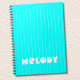 Neon Cyan White Thin Vertical Striped Name Notebook