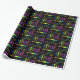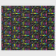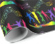 This design has several people dancing or partying on a black background. There is also music symbols above and below them and it is all done in neon colours.