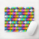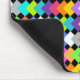 This mouse pad has a geometric design of neon diamonds overlapping each other on a field of black.