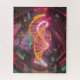 This design captures a stunning neon helix structure towering over a bustling urban landscape at night. The vibrant orange and pink neon lights contrast dramatically with the darkened cityscape, filled with illuminated signs and advertisements. This image evokes the energy of a city that never sleeps, with the helix adding a futuristic touch to the traditional skyline.