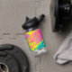 A vibrant burst of electric colours and stencil shapes that dance across the canvas in pure artistic chaos. Features bold magentas, electric yellows, turquoise blues, and deep purples that blend and clash in perfect harmony. Splattered paint textures, spiral motifs, and flowing forms create an energetic piece that captures the essence of creative freedom and artistic expression. Personalise with a name.