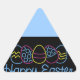 This design features decorated eggs in neon colours of pink, yellow, purple and blue. Happy Easter is printed on the bottom of this design. A backround is applied to the back. This design is featured with different coloured backrounds, or create your own backround.