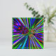 Bright digital artwork created from a fractal image recreated into an explosion of rainbow of colours that are reminiscent of neon lights against a black background. You can change the font colour in the birthday invite on back. A unique artistic style custom design.