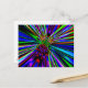Detail from some bright digital artwork created from a fractal image recreated into an explosion of rainbow of colours that are reminiscent of neon lights against a black background.