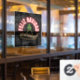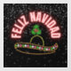 Fun window cling sign for your store, office or home features neon sombrero and curved "Feliz Navidad" neon red text on black background with falling snow