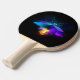 Antique, mechanical firefly with light bulb and thin wings glows orange, purple, turquoise on black background. Steampunk style.
