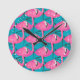 Neon Flamingos Round Clock