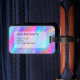 Features an abstract neon design. Personalise with a name on the front, and a name and address on the back.