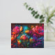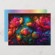 Neon flowers, colourful, bouquet, ink splatter postcard