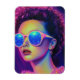 This electrifying digital artwork features a retro-inspired woman in glowing neon sunglasses reflecting a mesmerising galaxy of stars. With radiant hues of pink, blue, and violet, this cosmic glam design blends futuristic vibes with vintage elegance—perfect for standout prints, stickers, phone cases, or apparel on Redbubble. A bold statement piece for lovers of space, style, and surreal pop art.
