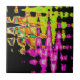 This abstract piece is chraacterised by vivid neon shades of purple, yellow, green, and black, forming an intricate pattern reminiscent of digital glitch art or distorted reflections. The fluid and fragmented arrangement creates a sense of movement, making it an eye-catching addition to contemporary fashion and home decor.