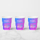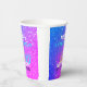 Trendy neon glow in the dark pink blue neo vibrant glitter colourful teen girl birthday party personalised paper cups.