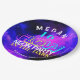 Trendy neon glow in the dark pink blue neo vibrant watercolor washed colourful Sweet Sixteen birthday party personalised paper plates.