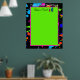 Neon paint splatter poster with rainbow colors in green, blue, pink, orange turquoise, on black. The number 16 is done in a starburst of neon colors. Perfect guest sign in board for your glow in the dark party theme. Change size to suit your needs.