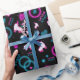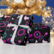 Neon Glow Roller Skating Let's Roll Pattern Wrapping Paper