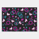 Neon Glow Roller Skating Let's Roll Pattern Wrapping Paper Sheet