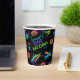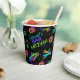A border of scattered glow sticks in an array of bright neon colours adds a fun element to this Bar Mitzvah paper cup design. Add a personal name using the provided template. Search ID991 to see coordinating invitation and other party supplies with this colourful design.