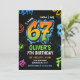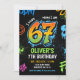 Neon Graffiti Six Seven Kids 7th Birthday Party Invitation