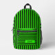 Neon Green Black Vintage Striped Name Printed Backpack