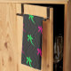 Neon Green, Hot Pink, Running, Runner, Black Tea Towel