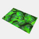 This Doormat features a pattern of swirling neon green planets. Modern design in 3D optics. Digital art. Cool Doormat for your home!