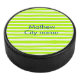Neon green yellow retro stripes add name cityplace hockey puck