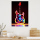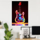 Neon Guitar against a solid black background. Bright vivid colours. Available in multiple sizes and also as an instant download.
