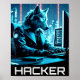 Neon Hacker Wolf Cyberpunk Style Poster