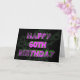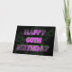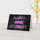 A glaring Happy 60th Birthday card set against a black background makes this card special. Just add a message or image inside to customise/personalise and give to a family member, friend or loved one.